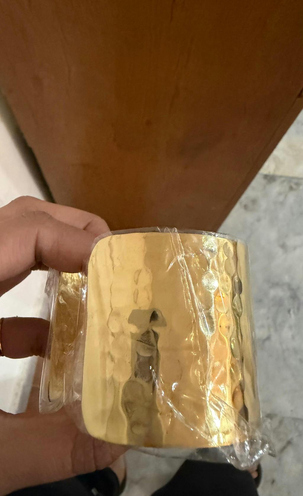 - Design: Minimalist wide cuff with hammered texture